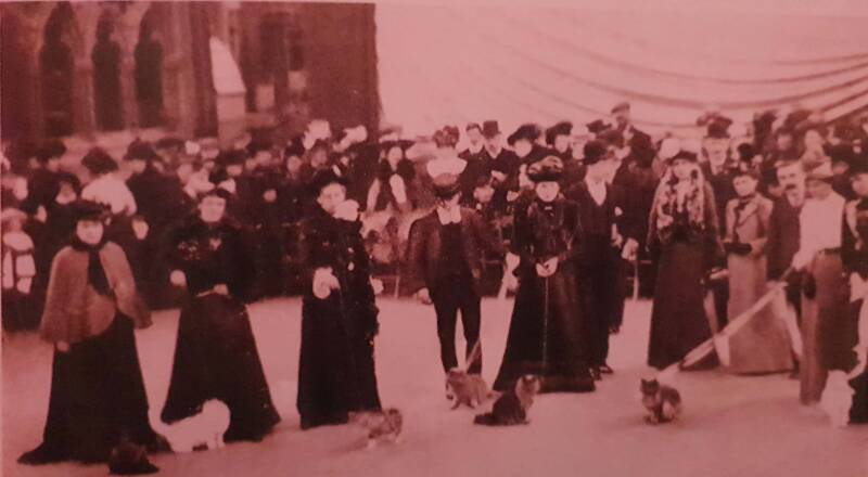 rond de eeuwenwisseling (1900) vonden de eerste kattententoonstellingen in de verenigde stateb plaats . in die eerste tijd werd er een tweedeling tussen langharen gemaakt ; enerzijds de 'maine cats 'en anderzijds de geïmporteerde Engelse langharige dieren - de perzen. deze tweedeling kwam niet naar voren in de klasse op shows , wat die schaarden de Engelse perzen en maine cats beiden onder de term 'langhaar'. wel werd de herkomst in de catalogi vermeld en in de stamboeken geregistreerd . zowel Engelse als Amerikaanse katten konden geregistreerd worden , maar er was één verschil : Amerikaanse katten konden enkel geregistreerd worden als er een beëdigde verklaring werd afgegeven van die herkomstvermelding heeft tot ongeveer 1915 geduurd. daarna werden de maine coons met de Engelse langharige dieren samengevoegd tot één langhaar perzenbestand . maine coons werden niet meer als zelfstandig ras gefokt .